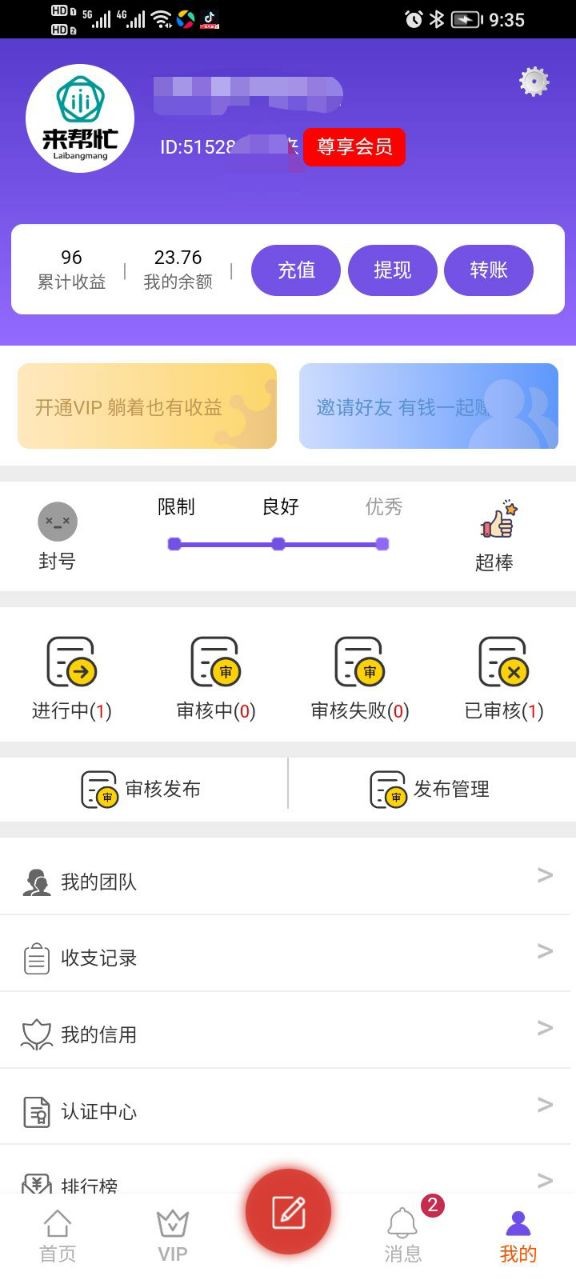 会员充值,可以发布任务,也可以做任务。充值体现都可以。